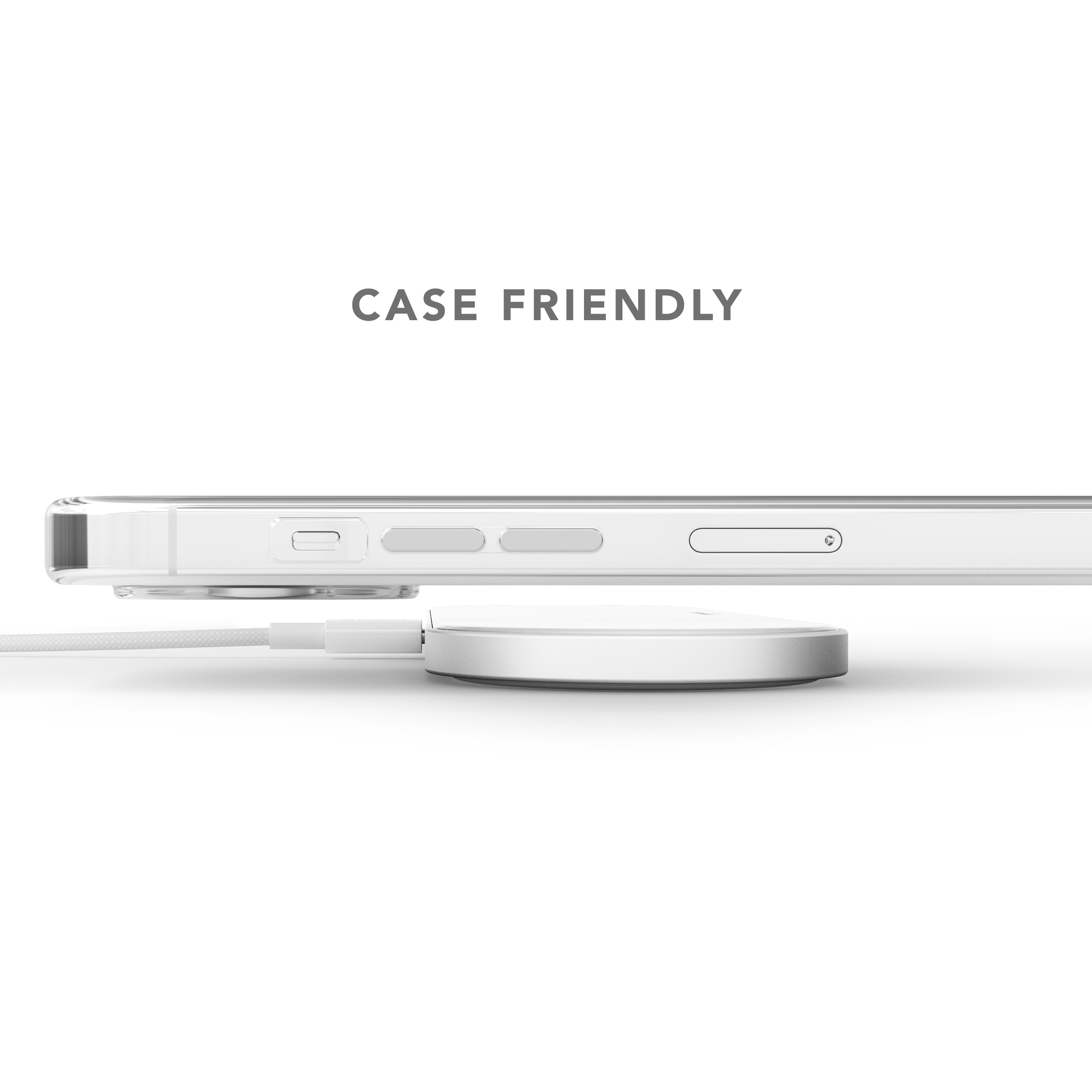 تصميم أنيق وعصري باللون الأبيض يناسب أي مكتب أو غرفة، مع قاعدة مانعة للانزلاق لضمان ثبات الجهاز أثناء الشحن.