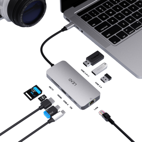 the lead lhb09 9-in-1 multiport hub offers a complete connectivity solution with nine essential ports. it supports 4k hdmi output, fast usb-c pd charging, multiple usb-a ports, ethernet connection, and sd/micro sd card readers. its lightweight and durable design makes it perfect for work, study, travel, and daily multitasking.